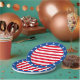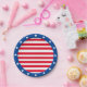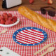 Pratos listrados de vermelho e branco com bordas de estrelas azuis