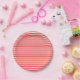 Prato De Papel Listras Horizontais Simples de Rosa e Branco