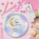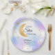 Sirva um pouco de magia no seu chá de bebê celestial com esses pratos de papel sonhadores. Uma lavagem em aquarela azul pastel suave e roxo define o céu para uma lua crescente com brilho dourado falso e estrelas cintilantes espalhadas. Estes são perfeitos para os futuros pais que estão organizando uma celebração neutra em termos de gênero para a chegada iminente do bebê.