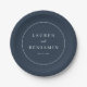 This elegant design features a minimalist and sophisticated style, perfect for a wedding celebration. The circular motif with clean lines creates a timeless look, while the navy blue color palette exudes classic charm and refinement. The simple yet stylish typography adds to its understated elegance, making it ideal for those who appreciate modern simplicity. Whether used on plates or invitations, this design captures an air of grace and poise, setting the tone for a memorable special occasion.