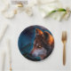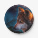 Prato De Papel Lobo e a lua à meia-noite