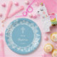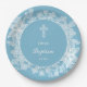 Prato De Papel Lugar Branco sobre o Batismo Azul Pastel