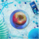 Um design de arte de uma maçã contra um fundo azul.