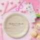 Placa de papel texturizada de madeira apresenta um fundo texturizado de madeira castanha clara. © Manhã 6