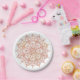 Prato De Papel Mandala Rosa e Laranja em Glam Branco