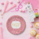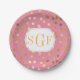 Prato De Papel Mangueira-rosa-doce monograma e pontos-reluzentes-