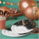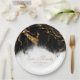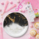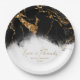 Um fundo de abstrato que lembra o mármore em tons de cinzas de carvão a preto, veinado com ouro reluzente, é o pano de fundo para textos elegantes e layouts modernos de design nos pedaços desta bela suíte de casamento. A placa de papel do casamento mostrada aqui apresenta o texto acima, mais o texto opcional de 'Love & Obrigado e um modelo para adicionar os nomes da noiva e do noivo e a data do casamento. Procure ID644 para ver todas as peças de coordenação neste conjunto.