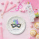 Esta placa de papel é mostrada em branco com estrelas douradas com uma festiva impressão de máscara de carnaval Mardi Gras. Também oferecemos um guardanapo de papel equivalente. Personalize este item ou comprar como está.
