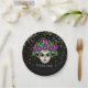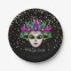 Esta placa de papel é mostrada com um impressão festivo de máscara de carnaval Mardi Gras. Preto colorido Também oferecemos um guardanapo de papel correspondente. Personalize este item ou comprar como está.