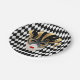 Esta placa de papel é mostrada em um impressão de diamantes de harlequin preto e branco festivos com um impressão de máscara Mardi Gras. Personalize este item ou comprar como está.