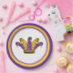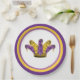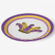 Mardi Gras Jester Hat com padrão de harlequin em roxo e ouro. O Prata também tem uma fronteira roxa e com o pau.