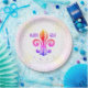 Prato De Papel Mardi Gras Rainbow Fleur De Lis com Confetti