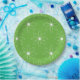 Este pratos de papel margarida verde para combinar com os suprimentos da festa de piscina "Whatever floats your goat” para uma festa de piscina temática no quintal para crianças.