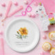 Beautiful marigold wedding paper plates for the bride. Features elegant minimalist and modern boho watercolor designs in yellow orange and green for autumn spring or summer.