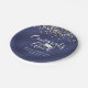 Chapas metálicas de papel para graduação em azul e branco, marinhos, personalizadas, acentuadas com um falso confete de folha de ouro. O design apresenta um título de tipografia de um script de caligrafia moderno, chamado CONGRATS FORMANDO com seu nome de formando, ano escolar e de aula ou outro texto personalizado. OPÇÕES DA PLACA: A amostra é mostrada no formato redondo de 7 polegadas; outros tamanhos e formas estão disponíveis na página de pedido. ASSISTÊNCIA: Para obter ajuda com a modificação ou personalização do design, alteração de cor, redimensionamento, transferência do design para outro produto ou, se você quiser coordenar itens, entre em contato com o designer ANTES DE PEDIR através da guia MENSAGEM de bate-papo Zazzle abaixo ou envie um email para makeitaboutyoustore@gmail.com.