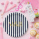 Prato De Papel Marinho de Monograma Blue Stripes Stripes Stripes