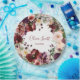 Design apresenta uma coroa impressa colorida com elemento floral de aquarela em tons de marsala, ameixa e cor-de-rosa pincelada sobre verde e floração de pénicas. Excelente para as comemorações do casamento!