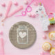 Rustic Mason Jar & String Lights Burlap Wedding Paper Plates.