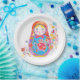 Estas placas de papel super-agudas apresentam uma boneca russa colorida, criada com aquarelas e lápis coloridos.