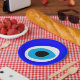 PAPER PLATES (Partido): Talisman & Amulet de olho Mau para proteção contra a negatividade e o bringer de boa sorte. Tradicionalmente originário de tribos árabes, turcas, gregas e protege-o de qualquer má vontade que, de outra forma, poderia ter um efeito negativo no seu bem-estar ou na sua vida em geral. A lenda da "maldição" dos olhos de mau, que se acredita ser lançada por um brilho maléfico, geralmente dá a uma pessoa, quando ela desconhece.
