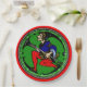 Não há melhor maneira de colocar a sua mesa de férias ou servir biscoitos de Natal (ou de os presentear) do que na variação original de um elfo de Parrish Maxfield pré-WI com leggings de bolinhas branca e negra + a saudação de "Feliz Natal" em um fundo verde-alegre.