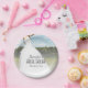 Belo design de casamento com uma foto estilizada de uma noiva num campo contra um céu azul. Texto personalizável. Perfeito para um chá de panela. PinkInkArt original!