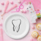 Chapas de papel com ilustração de um dente dental feito com um contorno preto.