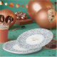 Elevate your baby shower table with our Mediterranean Citrus paper plates. Blue maiolica tiles with warm orange accents and delicate citrus illustrations create a sunlit Mediterranean feel, while a soft white frame highlights modern, refined lettering. Perfectly coordinated, these plates turn a simple party essential into a stylish, cohesive detail for your celebration.