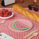 Este é um desenho de uma melancia. Os guardanapos de papel no mesmo design também estão disponíveis e diferentes tipos de fruta para misturar e combinar. Esta imagem está disponível em uma variedade de outros produtos, basta clicar no link abaixo da foto perto de 'Sobre este Design'.