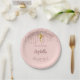 Prato De Papel Menina batismo dourada rosa dourada dourada drena