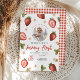 Este design de primeiro aniversario de papel de de de meninas bonitinhas apresenta ilustrações adoráveis de morango e flor rosa, e pode ser personalizado com o nome de suas meninas na tipografia química. A design é perfeita para o seu aniversário!
