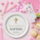 Prato De Papel Menino Elegante Batismo Branco e Dourada Cruz