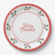 Prato De Papel Merry Christmas Holly Plate Red and White