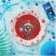 Um Papel Festivo De Natal Vermelho E Branco Placa Com Rudolf, A Pequena Nose Vermelha E Os Flocos De Neve Vermelhos