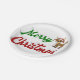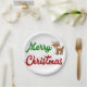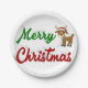 Prato De Papel Merry Christmas Reindeer red green script