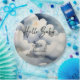 Olá, baby chá de fraldas de modelo de papel para a nuvem com placas de chá de fraldas personalizadas. A aquarela da cinza nutre a fonte casual moderna.