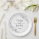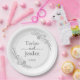 Add a touch of refined elegance to your reception with these modern minimalist botanical wedding paper plates. This design features delicate, hand-drawn floral line art that elegantly frames your personalized details, creating an organic and romantic look for your celebration.