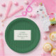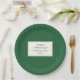 Bring a polished holiday feel to your table with this rich green pinstripe Christmas plates. The deep green stripes and cream center panel create a timeless, tailored look that feels both festive and refined. Perfect for Christmas dinners, holiday parties, and cozy winter gatherings. Personalize the text to feature your family name or seasonal message.