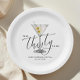Serve up your celebration in style with this modern “Talk Thirty to Me” martini glass paper plate, the perfect addition to your 30th birthday party décor. Featuring an elegant martini illustration with green olives and chic black typography, this plate combines fun and sophistication for an unforgettable milestone event.