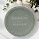 Prato De Papel Moderno Elegante Script Sage Green Wedding