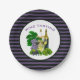 Monte sua mesa de festa com estilo com este prato de papel com design de degustação de vinho. Personalize este prato com suas próprias palavras ou logotipo ou design ou compre como mostrado com o design único de uva, taça de vinho e garrafa no centro e o texto Degustação de Vinho.
