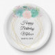 Prato De Papel Moderno Rosa e Verde Sucultura Aquarela Aniversári