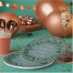 Adicione um toque de elegância ao seu evento com este prato de papel personalizável com fundo azul escuro retrô aqua suave e moldura de eucalipto.