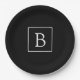 Prato De Papel Monograma clássico simples | Preto com texto branc