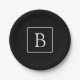Prato De Papel Monograma clássico simples | Preto com texto branc