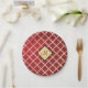 Prato De Papel Monograma de Padrão Geométrico Dourado Vermelho