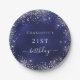 Prato De Papel Monograma de poeira azul-marinho de aniversário