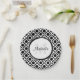 Prato De Papel Monograma e Nome Geométrico Moderno Preto e Branco