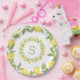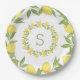 Prato de papel com monograma elegante e casual. Perfeito para um chá de noiva de verão, um brunch no jardim ou uma recepção de casamento. Também é perfeito para uma festa de aniversário. Os limões pintados à mão parecem frescos e brilhantes. Eu amo!