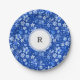 Prato De Papel Monograma, Flores Tropicais Azuis Cobalto Padrão 7